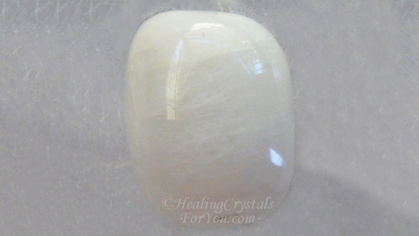 Cette pierre est blanche et possède un faible indice de réfraction, ce qui la fait presque disparaître lorsqu’elle est placée dans l’eau.