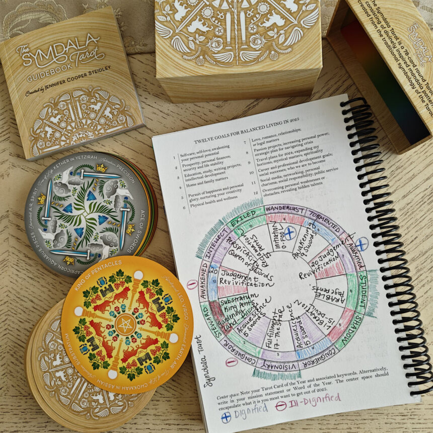 Un jeu de narration mettant en vedette un groupe de félins curieux, courageux et heureux. Le style d’illustration détaillé d’EC Mazur donne vie au concept de tarot de Malumir Logan. Ce jeu mélange les correspondances kabbalistiques et chakras avec le tarot. Bien que sur le thème du chat, il s’agit d’un jeu qui facilite le travail énergétique et la compréhension du champ aurique.