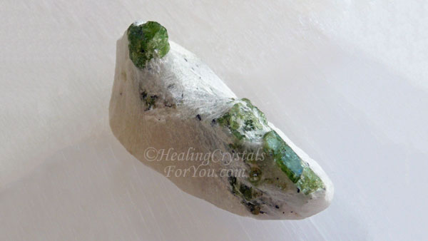 Les cristaux verts du Vietnam se trouvent souvent en combinaison dans la même pierre avec le spinelle rouge, et la plupart se trouvent dans du marbre blanc brillant.